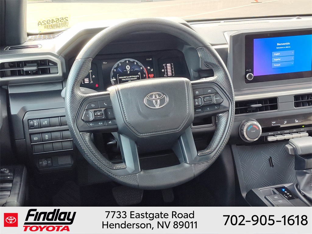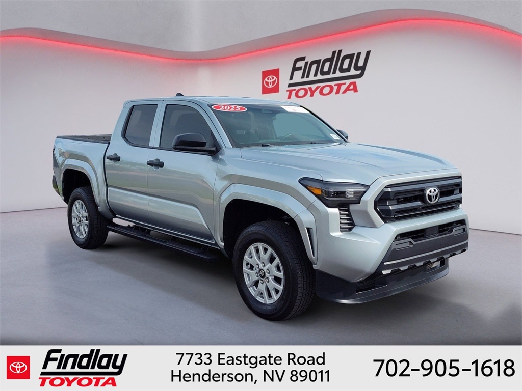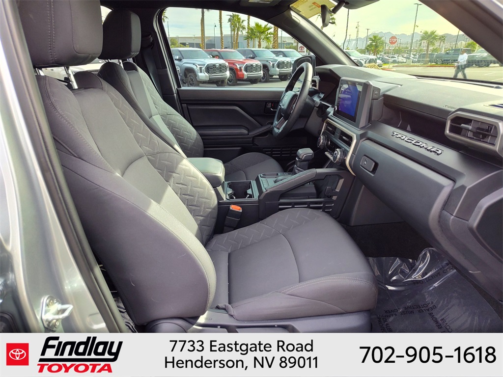 Looking for the best quality used cars near Las Vegas? Findlay Toyota of Henderson is your top destination. As the premier dealership in Nevada, we offer an extensive selection of top-notch pre-owned vehicles, ensuring you find the perfect car to fit your needs and budget. Conveniently located at 7733 Eastgate Rd in the Valley Automall, our dealership spans 12 1⁄2 acres and features a 145,000-square-foot facility, including Nevada’s only Master Certified Toyota Service Department. Our expert sales and financing teams are dedicated to providing a hassle-free buying experience, and our state-of-the-art service center is equipped to handle everything from routine maintenance to major repairs. Our multilingual staff speaks 14 languages, making us accessible to a diverse range of customers. Beyond exceptional service, we are committed to giving back to the Henderson community through initiatives like Toys for Tots and the Las Vegas Rescue Mission. Discover why Findlay Toyota of Henderson is the trusted choice for quality used cars and exceptional service. Visit us today and drive home in your dream car! This Toyota Tacoma is equipped with the following equipment: 3.583 Axle Ratio, 4-Wheel Disc Brakes, 6 Speakers, ABS brakes, Air Conditioning, Alloy wheels, AM/FM radio: SiriusXM, Anti-whiplash front head restraints, Apple CarPlay/Android Auto, Auto High-beam Headlights, Brake assist, Bumpers: body-color, Driver door bin, Dual front impact airbags, Dual front side impact airbags, Electronic Stability Control, Emergency communication system: Safety Connect (1-year trial), Exterior Parking Camera Rear, Fabric Seat Trim, Front anti-roll bar, Front Bucket Seats, Front Center Armrest, Front reading lights, Front wheel independent suspension, Fully automatic headlights, Heated door mirrors, Illuminated entry, Knee airbag, Low tire pressure warning, Occupant sensing airbag, Outside temperature display, Overhead airbag, Overhead console, Passenger door bin, Power door mirrors, Power steering, Power windows, Radio: 8" Toyota Audio Multimedia, Rear step bumper, Rear window defroster, Remote keyless entry, Speed control, Speed-sensing steering, Split folding rear seat, Steering wheel mounted audio controls, Tachometer, Telescoping steering wheel, Tilt steering wheel, Traction control, Trip computer, Variably intermittent wipers, and Wheels: 17" Styled Alloy. ** This 2025 Toyota Tacoma is equipped with 2.4L 4-Cylinder RWD**, ** and this Tacoma is trimmed in Silver with Black Fabric interior**.
